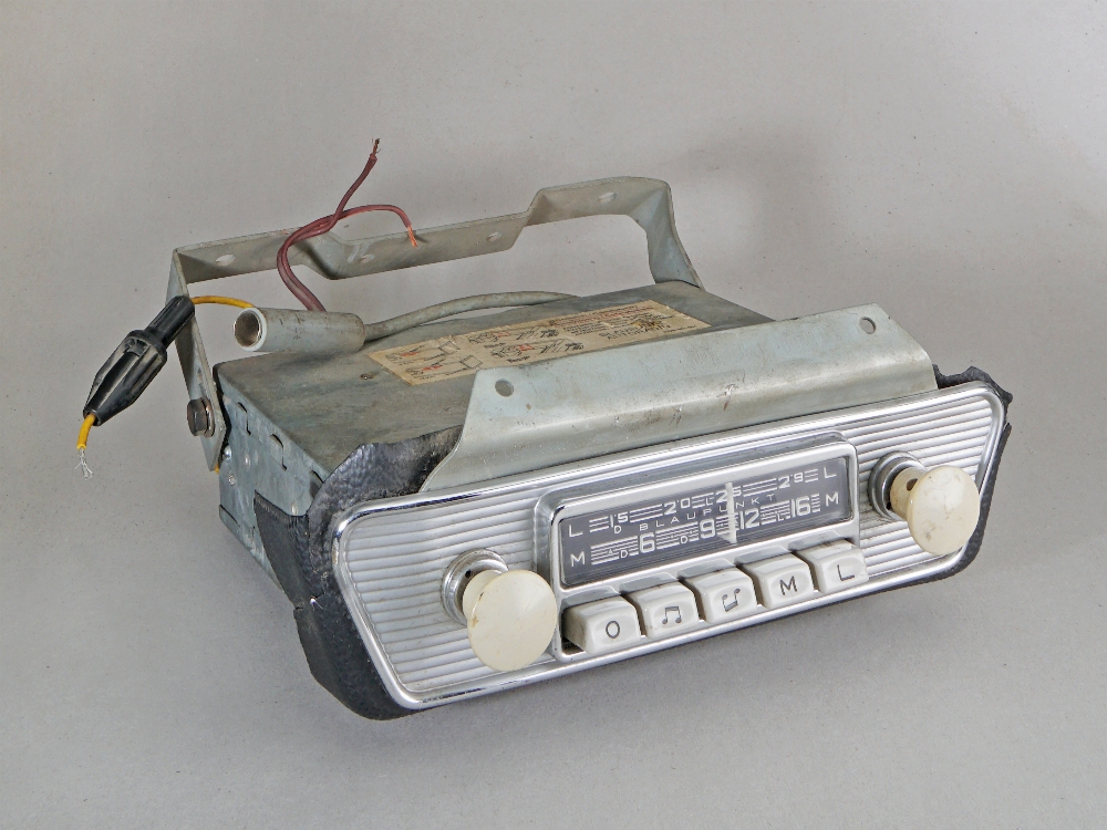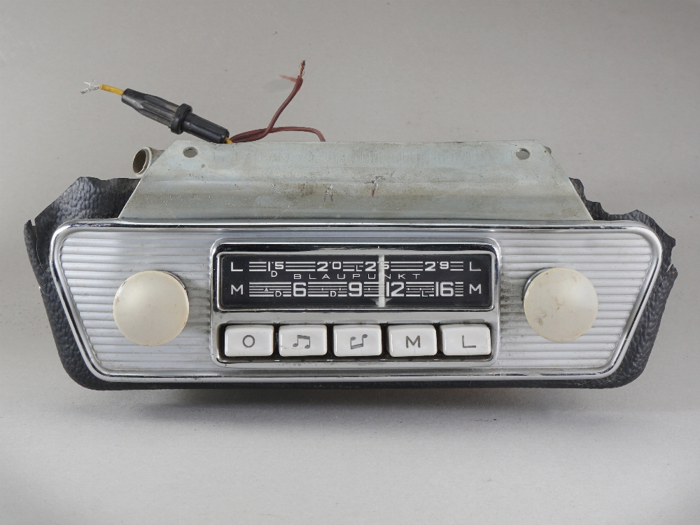 Oldtimer-Autoradio deutsch/europäisch, original und funktionsfähig, nur gibt es keine Mittel- oder Langwellensender mehr, die man damit empfangen könnte. Sehr verbreitetes Modell der Firma Blaupunkt in den '60er Jahren.