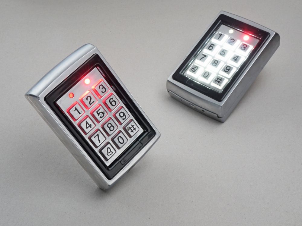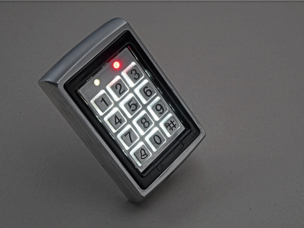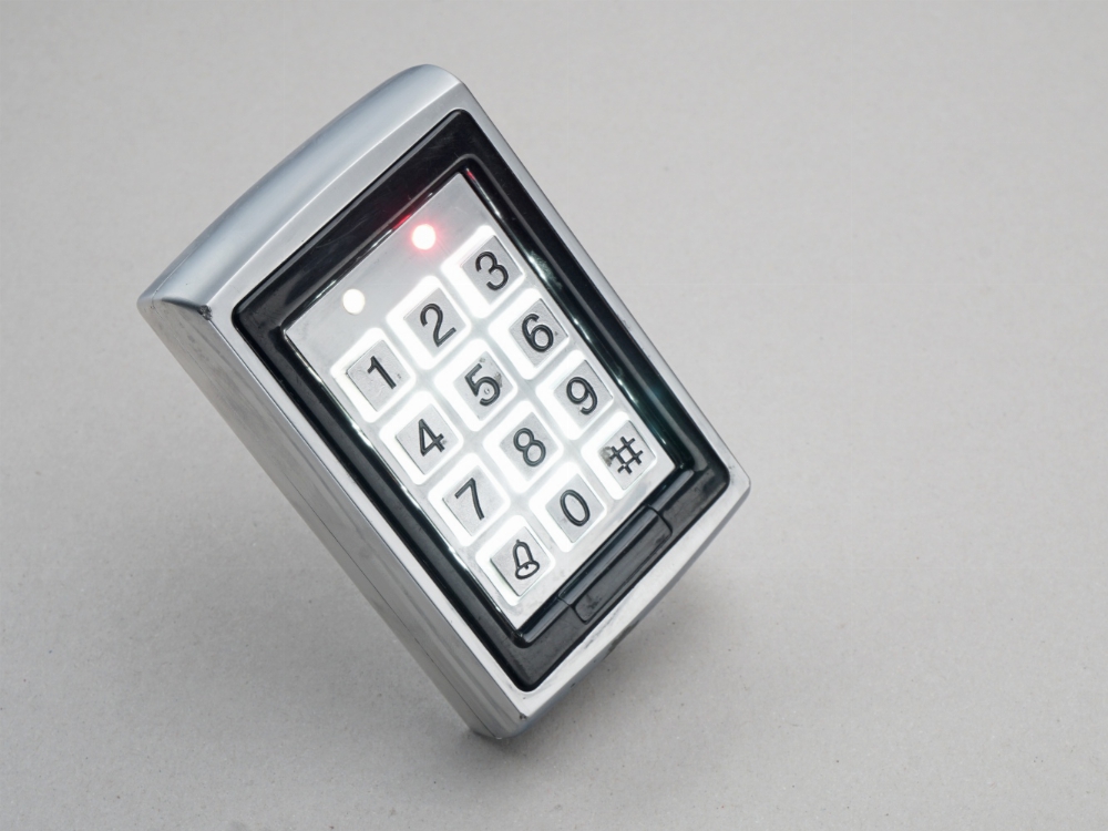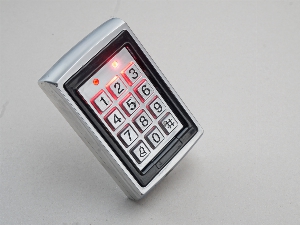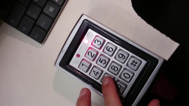 Das moderne Codeschloss mit Metallgehäuse ist speziell für Filmzwecke umgebaut. Eingebaute Batterien versorgen das Gerät, es kann ein beliebiger 5-stelliger Code eingegeben werden, beim ersten Tastendruck wird auch die Tastaturbeleuchtung eingeschaltet, beim fünften Druck auf eine beliebige Taste schaltet die Led von rot auf grün. Nach etwa 4 sec. schaltet die Led wieder zurück auf rot. Das Gerät funktioniert völlig autonom, benötigt keine Kabel und keine externe Steuerung, kann also einfach neben die Tür gehängt werden.