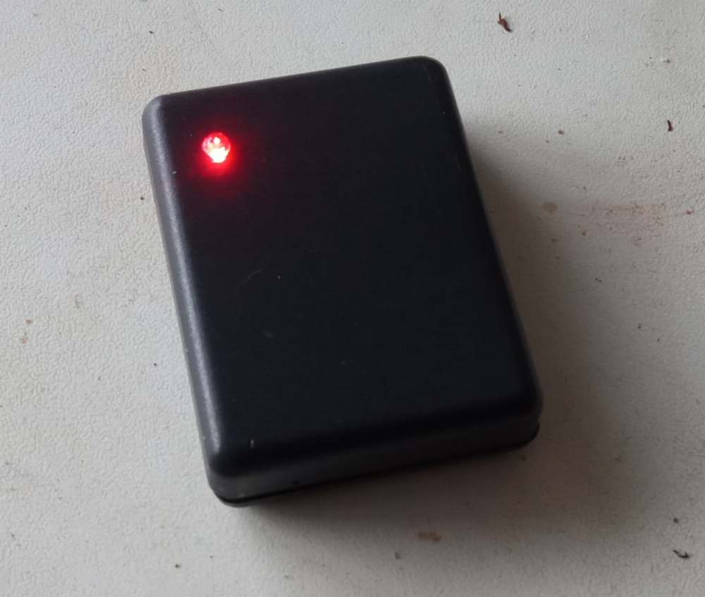 Ein kleines 5x3,5cm Gehäuse mit einer blinkenden Led, kann z.B. als Glasbruchsensor am Fenster montiert werden, eignet sich aber auch, um einen ausgelösten Alarm anzuzeigen oder als versteckt montierter Minispion. Das Gerät blinkt mit den eingebauten Batterien ohne weiteres mindestens einen ganzen Tag lang, es kann durch ein kleines Loch im Gehäuse ein- und ausgeschaltet werden.