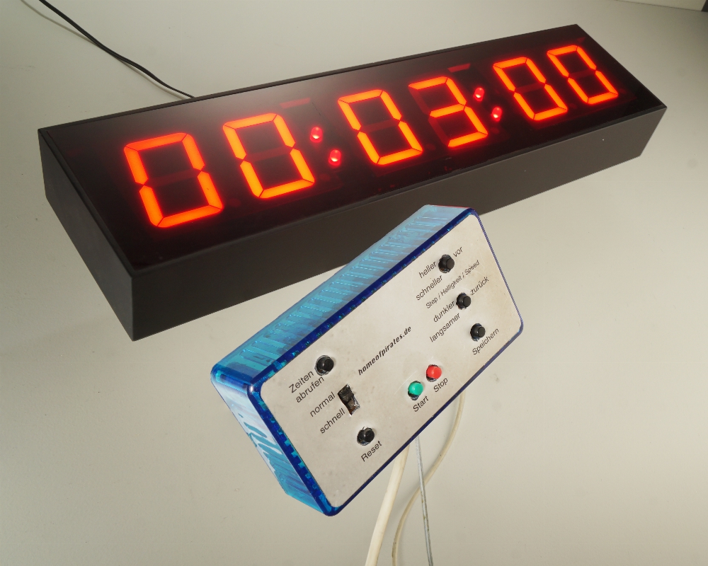 Große 6-stelligen Digitaluhr mit vielen Sonderfunktionen wie schneller Vor- un Rücklauf, Singlestep, speicherbare Startzeiten, Helligkeitseinstellung.