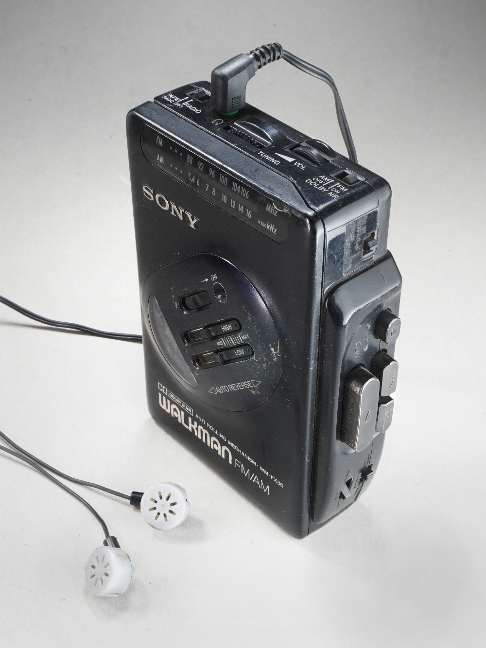 Dies ist einer der vielen Walkman-Modelle der Firma Sony. Diese kleinen Kassettenspieler waren in den '80er Jahren sehr beliebt und erreichten unter Jugendlichen nahezu Kultstatus,