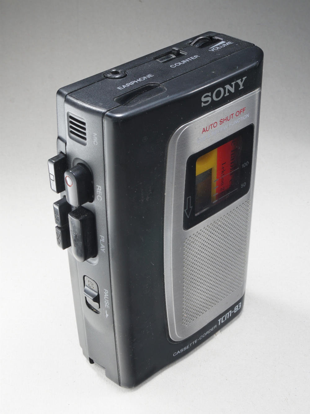 Dies ist ein Mini-Dassettenplayer der Firma Sony aus den '80er Jahren. Obwohl dieses Modell nicht das von Sony geschützte "Walkman"-Branding trägt, gehör dieses Gerät zweifellos in diese Produktreihe.